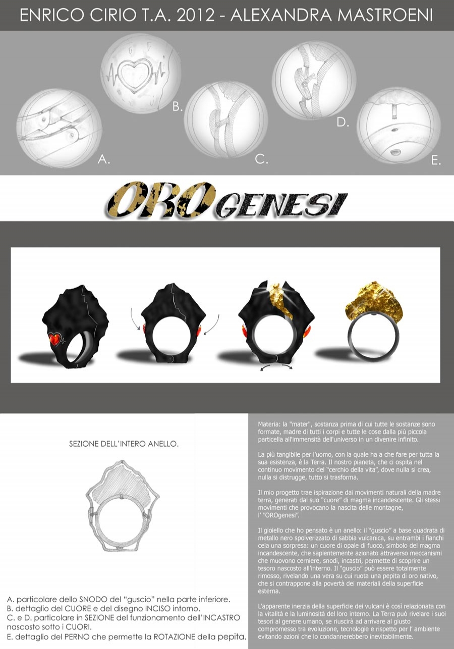 Il progetto trae ispirazione dai movimenti naturali della madre terra (la materia oggetto del tema), generati dal suo cuore di magma incandescente. Gli stessi movimenti che provocano la nascita delle montagne, l'Orogenesi.