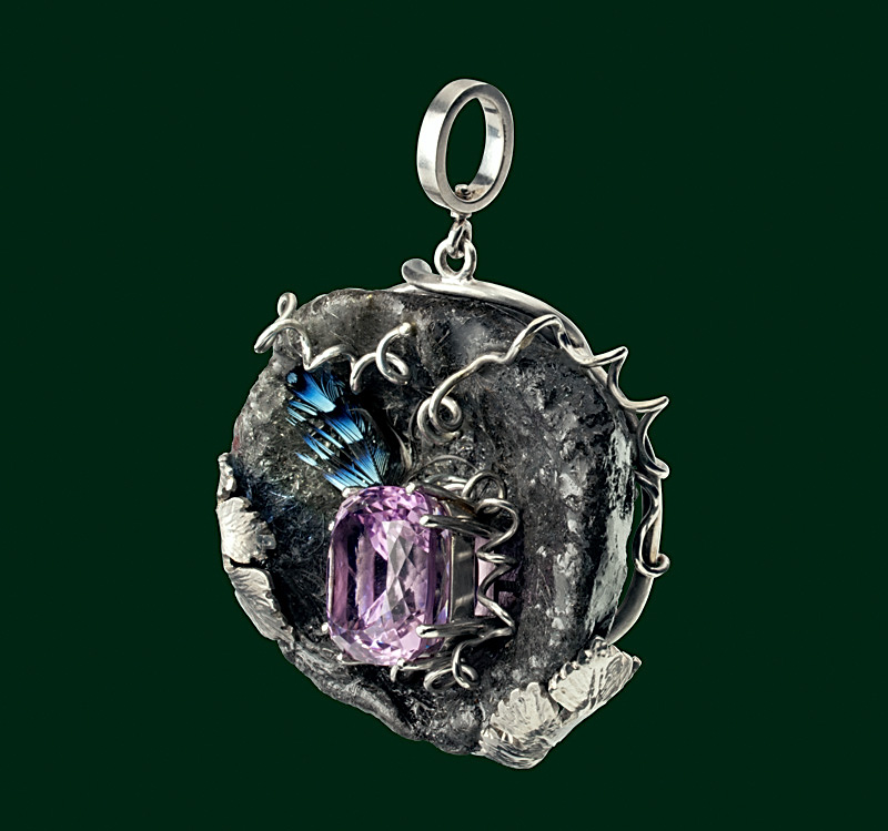 Materiali: Oro bianco, Piuma azzurra, Ferro